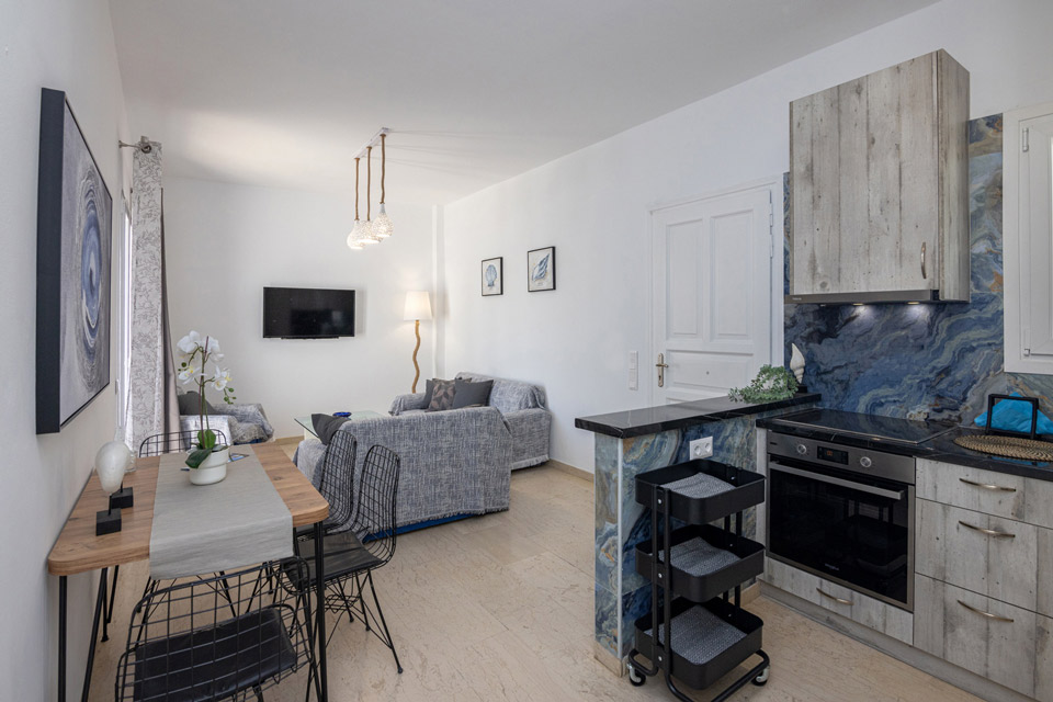The apartment accommodates 4 people with the possibility of 2 additional people on a sofa bed (upon request).